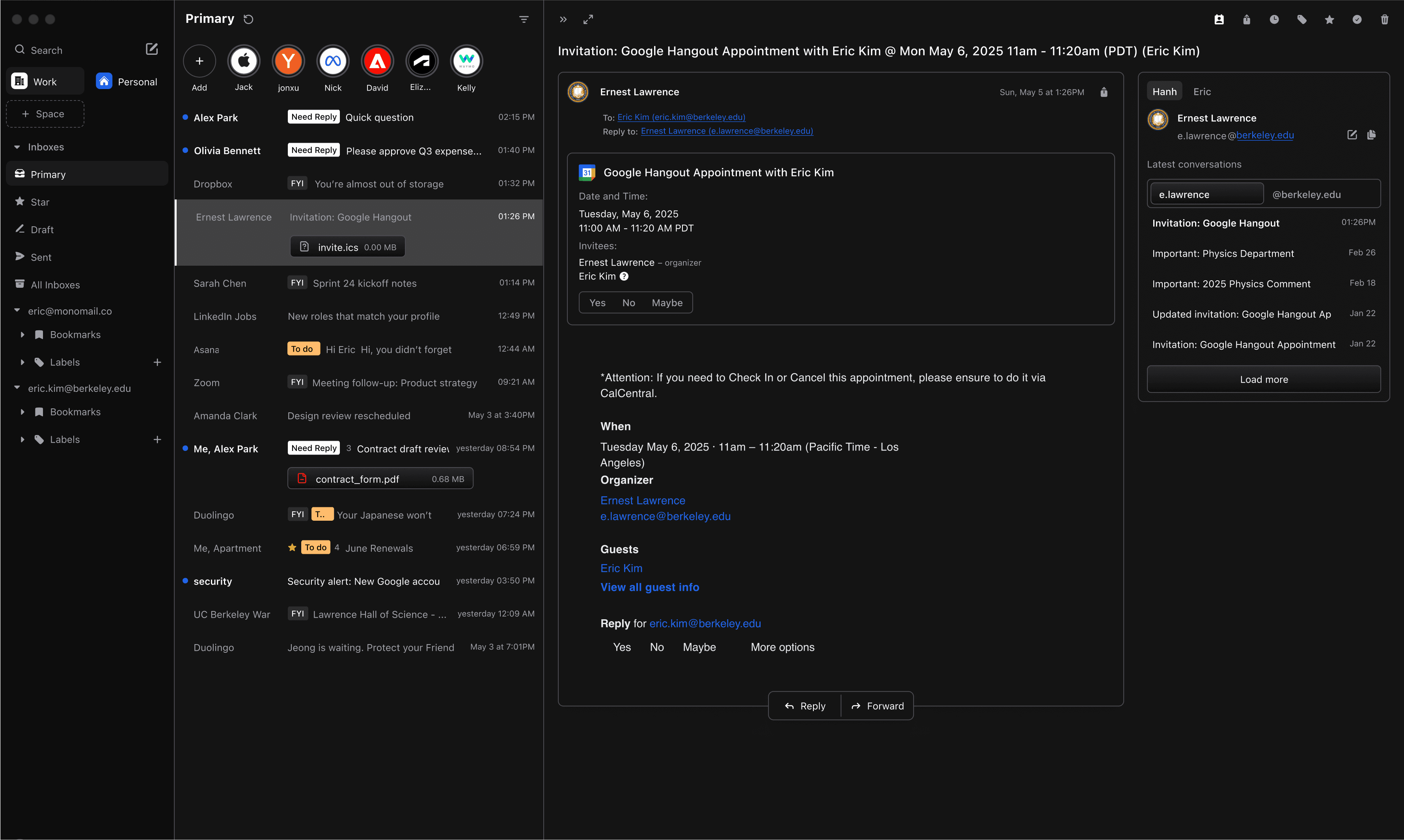 Group inboxes by context—Work, Personal, Projects—and switch between them instantly.